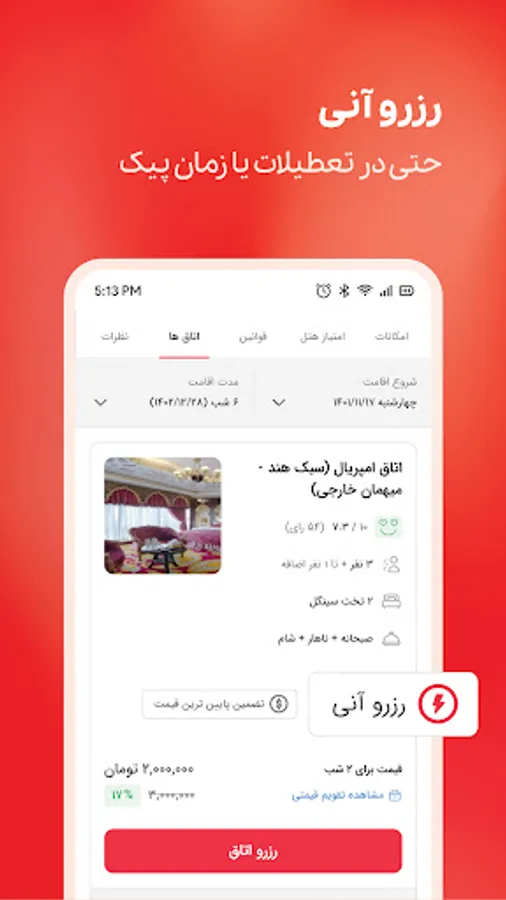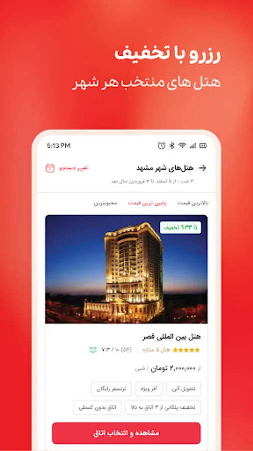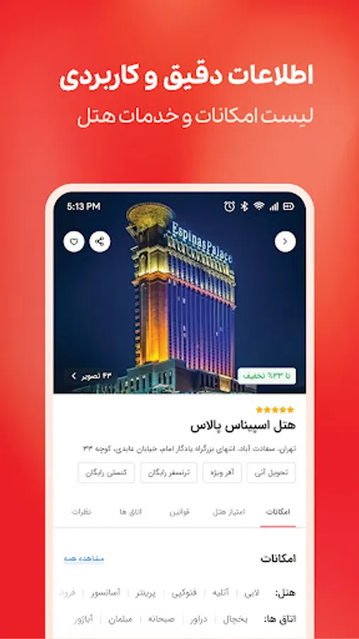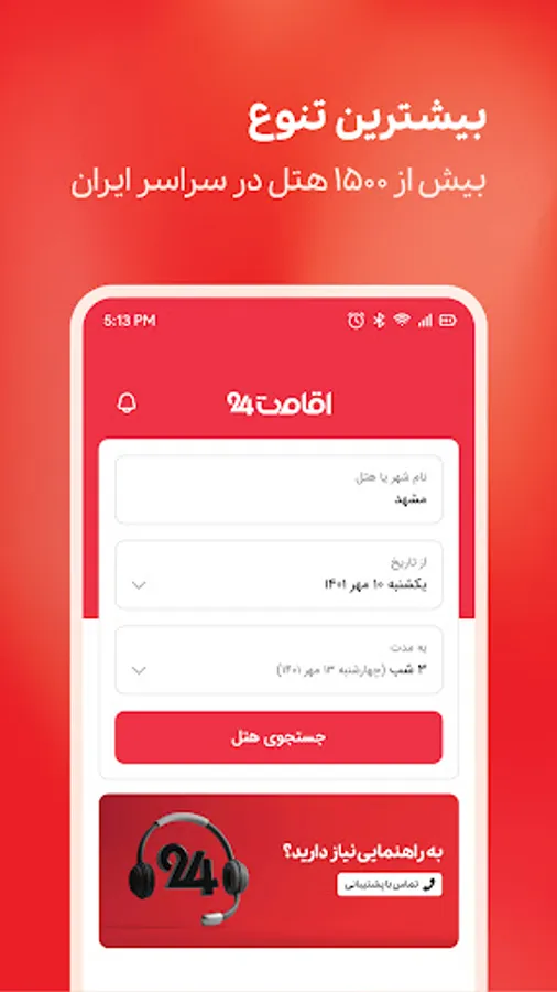 In the 24 hotel reservation application, you can check the best hotels in Iran in terms of price and facilities and book them directly. In this program, immediately after you confirm your reservation, the online hotel voucher will be issued instantly and automatically. You can always see this voucher in your user profile and use it to present to the hotel.
