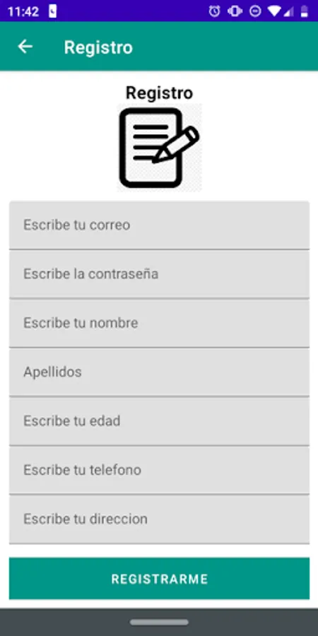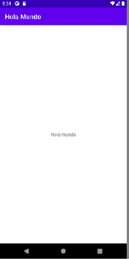 La aplicación solo contiene un mensaje diciendo "Hola Mundo"