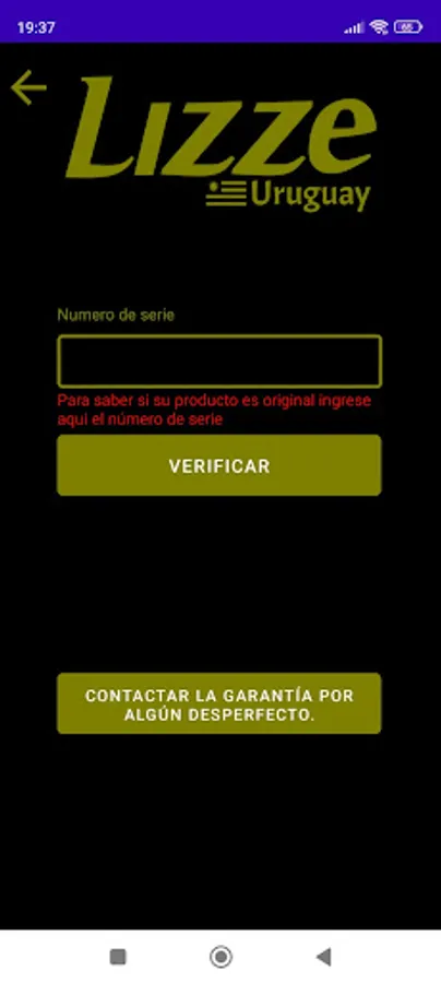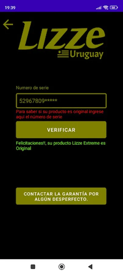 With this application, our clients of Lizze Extreme Uruguay can check if their purchased product is original through its serial number, they can also make a warranty request to their supplier for any manufacturing defect.