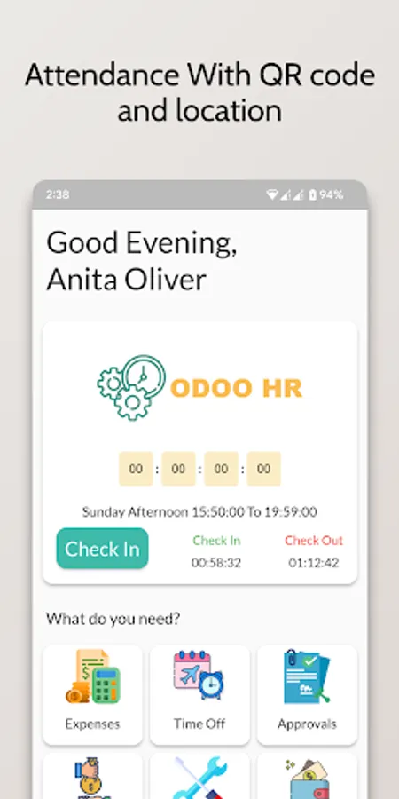 - Your employee can check in/out with qr code and location of company