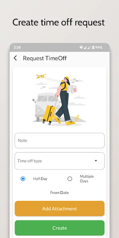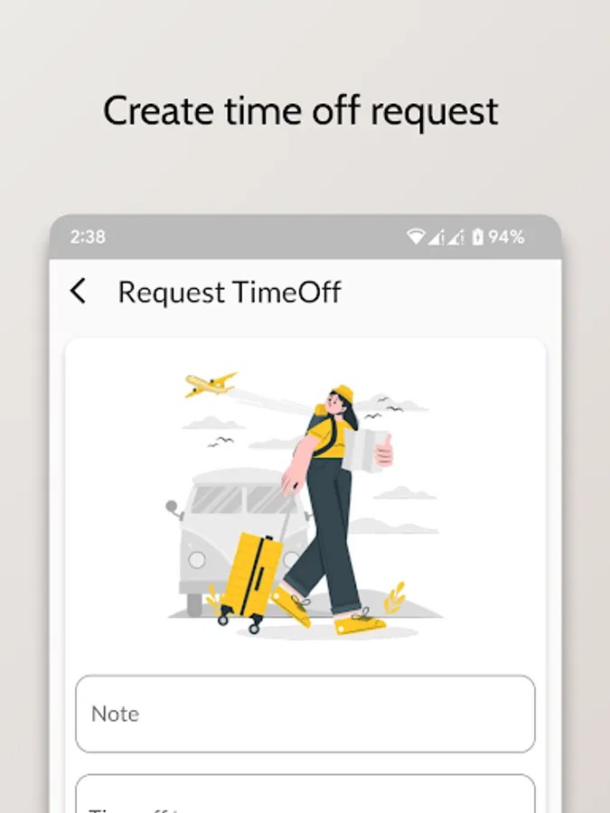 - Your employee can create time off request