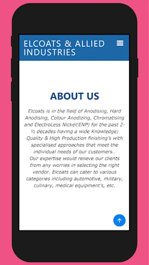 Elcoats is in the field of Anodising, Hard Anodising, Colour Anodizing, Chromatising and ElectroLess Nickel(ENP) for the past 2-½ decades having a wide Knowledge; Quality & High Production finishing’s with specialised approaches that meet the individual needs of our customers..