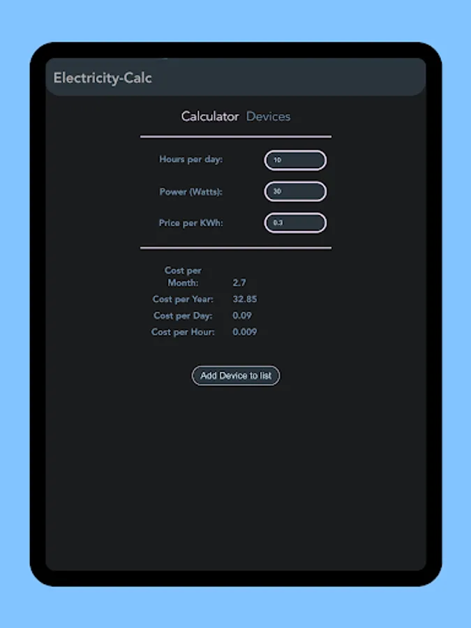 You can create a list of all devices in your house and see at a glance how much you're paying for electricity per day/month/year.