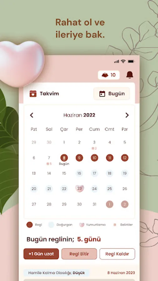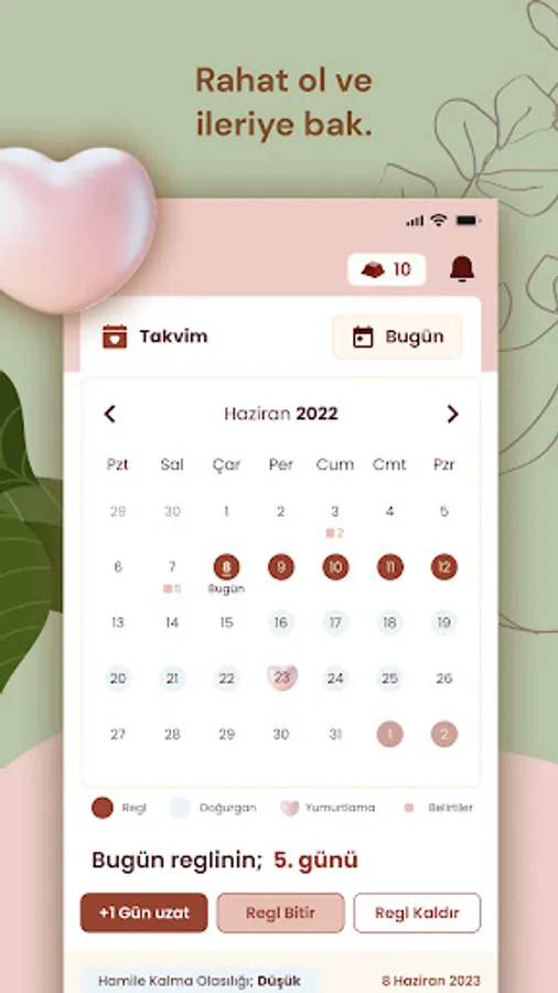 The menstrual calendar feature helps women track their menstrual cycles. This feature estimates the start and end dates of menstrual periods, the time of ovulation, and the time between menstrual periods. It also offers the opportunity to track premenstrual syndrome (PMS) symptoms and hormone fluctuations. This calendar adapts to the user's cycle with personalized reminders. In this way, women can better understand and plan the changes in their bodies. The menstrual calendar provides an overview of women's health, helping women be more aware of their bodies.