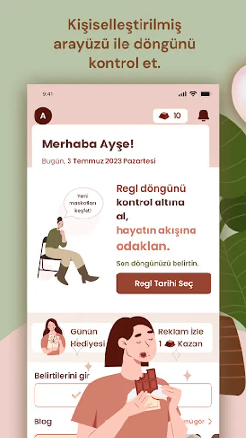 The informative diary feature offers valuable information to enrich women's daily lives. Special content is published every day by experts on women's health, nutrition, diets, yoga and more. These contents offer users new perspectives and make concrete suggestions to improve their lives. Whether you're looking to learn a new diet plan, better understand the menstrual cycle, or find ways to reduce stress, these journal entries guide you. With its informative and comprehensive content, this feature supports women to lead a conscious and healthy life.