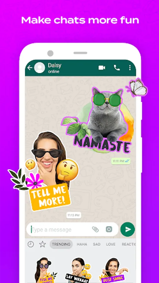 Make your personal stickers for WhatsApp & Telegram! Create photo stickers, text stickers, anime stickers, meme & emoji stickers from scratch. Need more? Explore over 70 free sticker packs with tons of stickers to use: stickers of your favorite celebrities, animal stickers, & so much more!