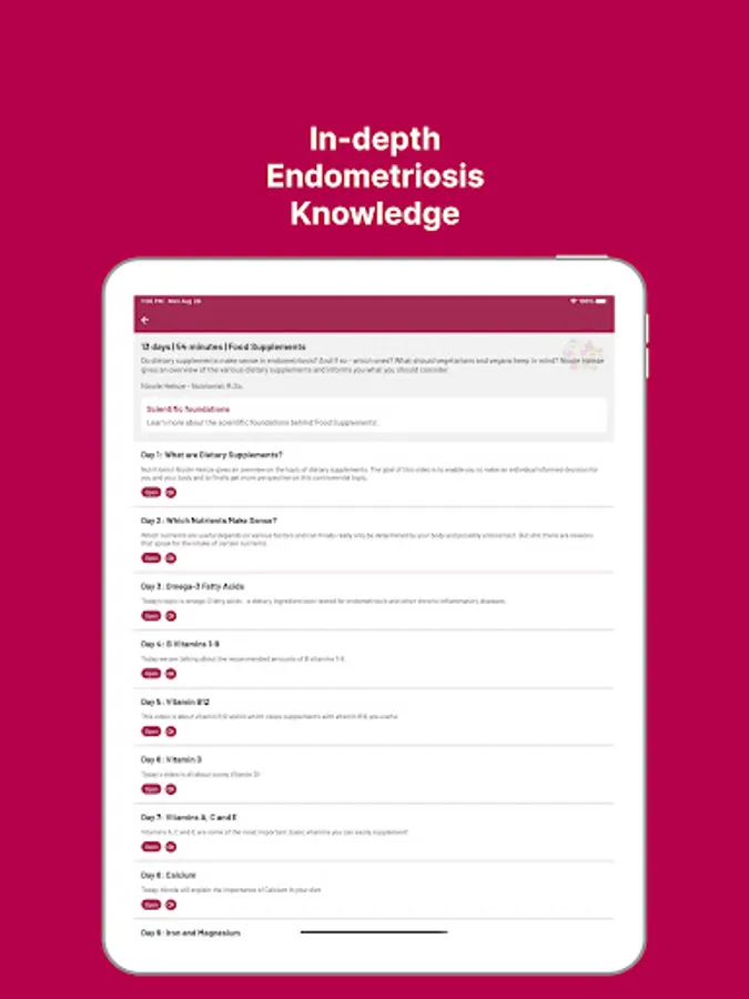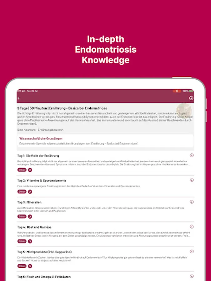 Employing a comprehensive, multimodal therapy approach, the Endo-App delves into a myriad of strategies to alleviate symptoms tied to endometriosis. It's not just about managing; it's about empowering you to regain sovereignty over your well-being.