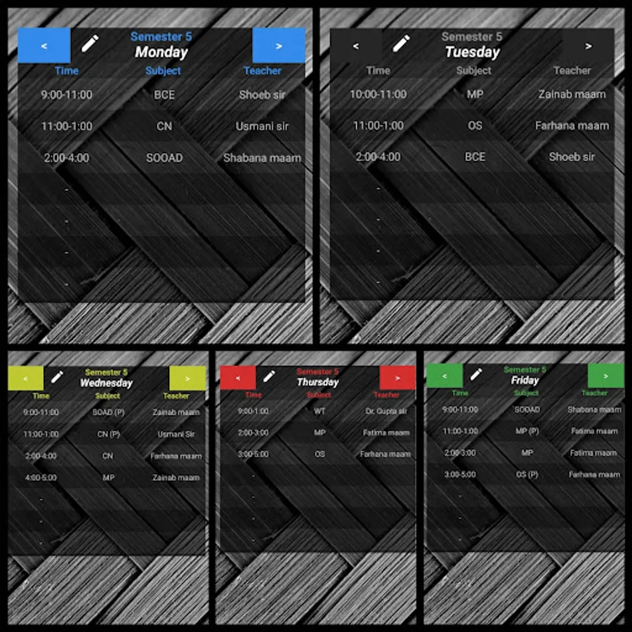 >Edit your Timetable as per your own requirements.