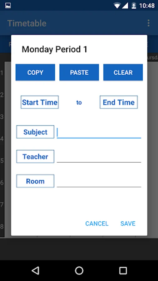 >Copy and Paste fields for fast entry in timetable.