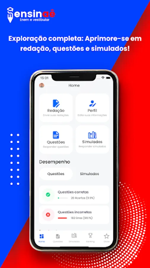 📝 Realistic Simulations: Immerse yourself in a real exam simulation experience, with simulations that faithfully reflect the structure and rigor of ENEM and entrance exams. Assess your progress, identify areas for improvement, and build your confidence for test day.