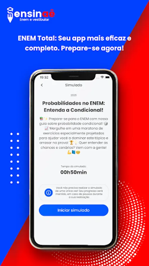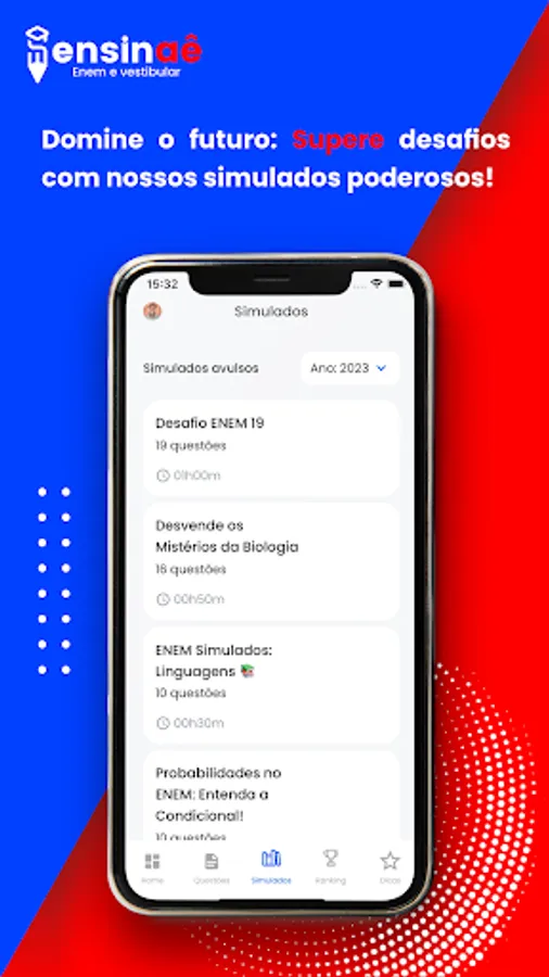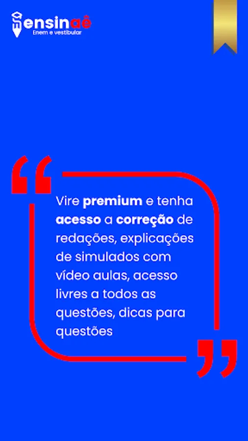 With our app, you will have comprehensive and efficient preparation at your fingertips. Don't leave success to chance – embark on this enriching learning journey and be ready to conquer ENEM and college entrance exam challenges with confidence. Download now and start paving the way to a bright future!