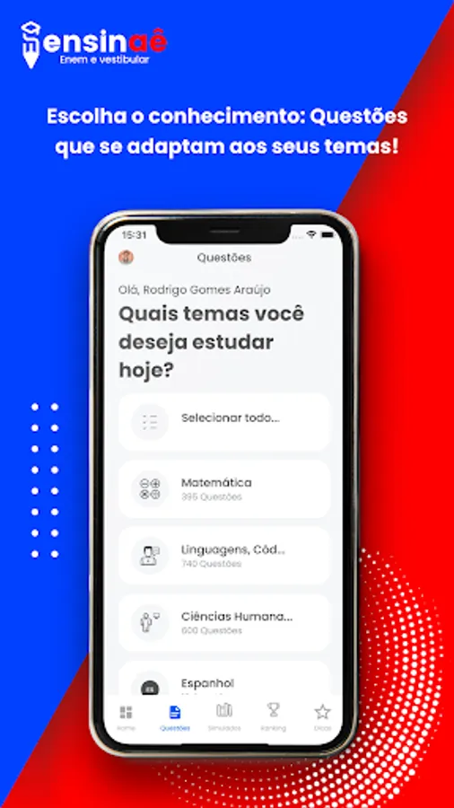 📚 Challenging Questions: Test your knowledge with an extensive collection of carefully selected questions, covering all essential ENEM and college entrance exam topics. Sharpen your analytical skills and broaden your understanding in an interactive learning environment.
