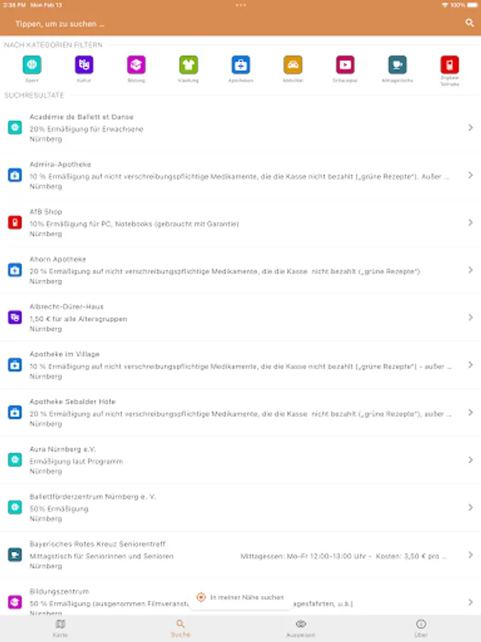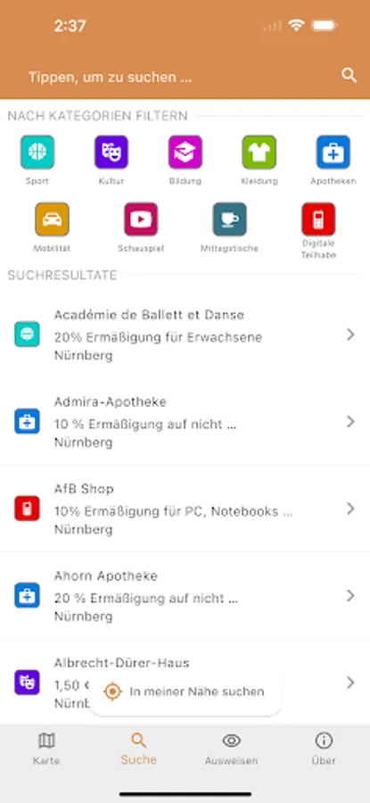 With the app for the Nuremberg Pass, you can call up the numerous discounts in the areas of education, culture, leisure, sports and local transport in Nuremberg at any time.