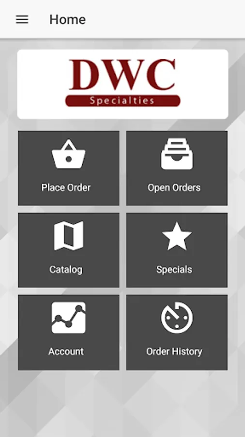 The DWC Specialties app is designed for speed which allows customers to freely place orders from mobile devices and tablets. Additionally customers will be able to view products, order guides, orders history and account details.
