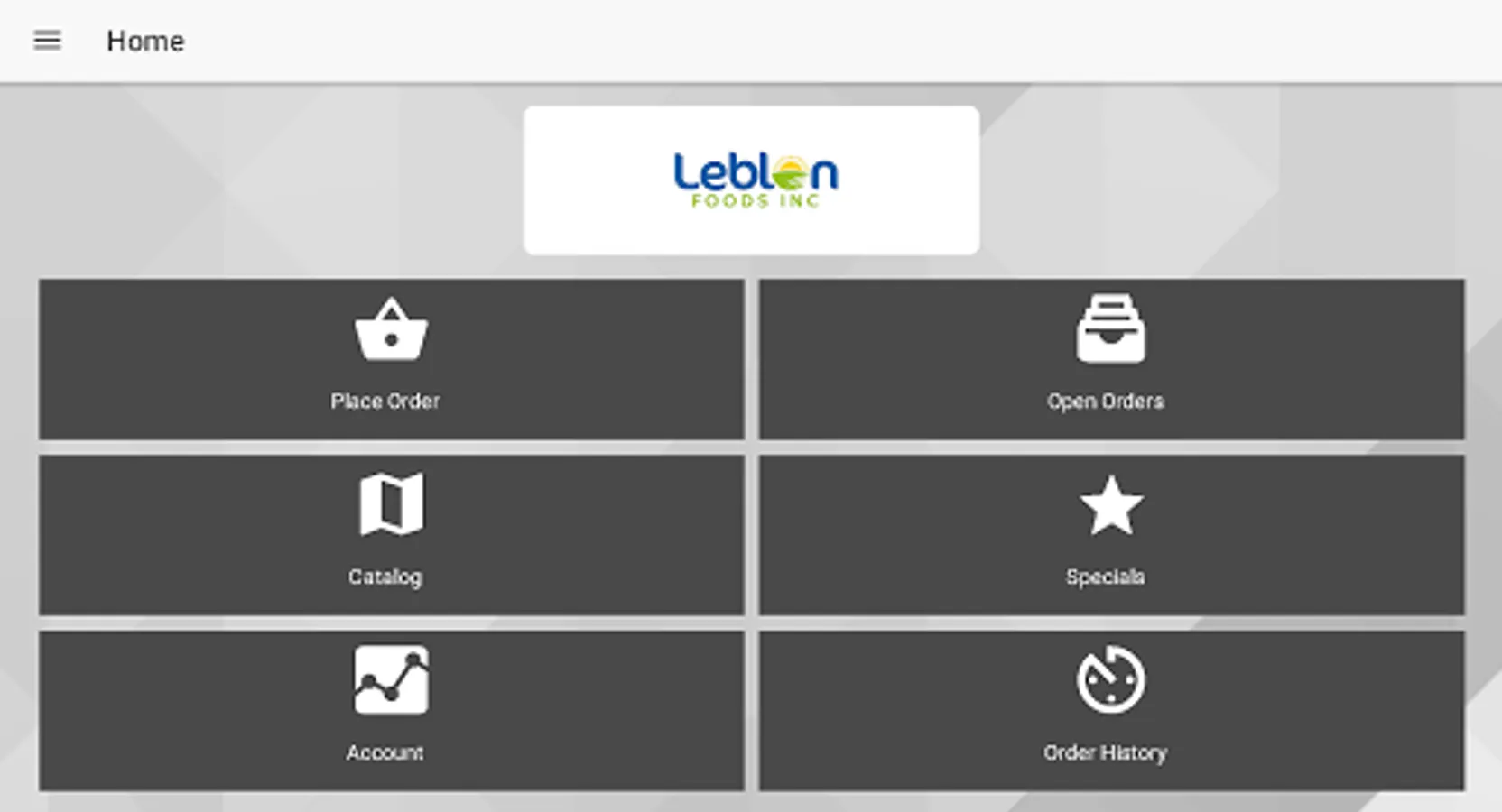 The online ordering application for Leblon Foods customers allows you to quickly place and review the status of orders using your mobile phone or tablet devices.