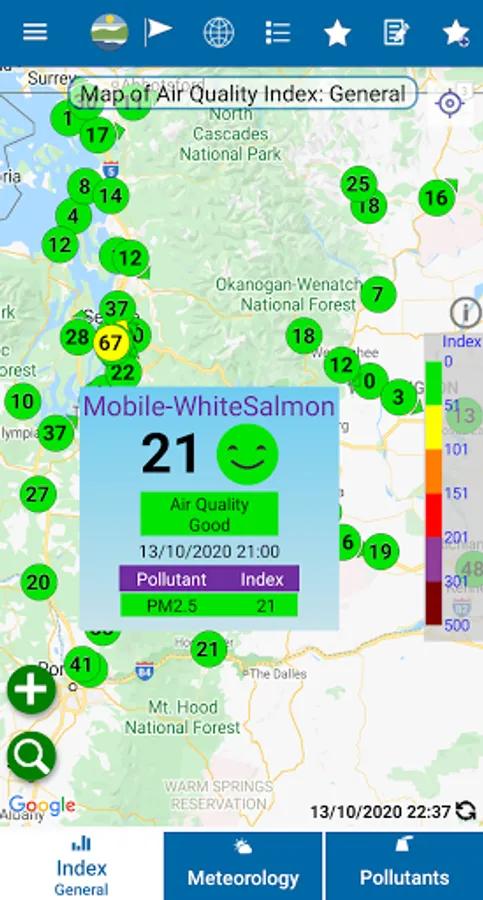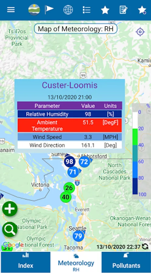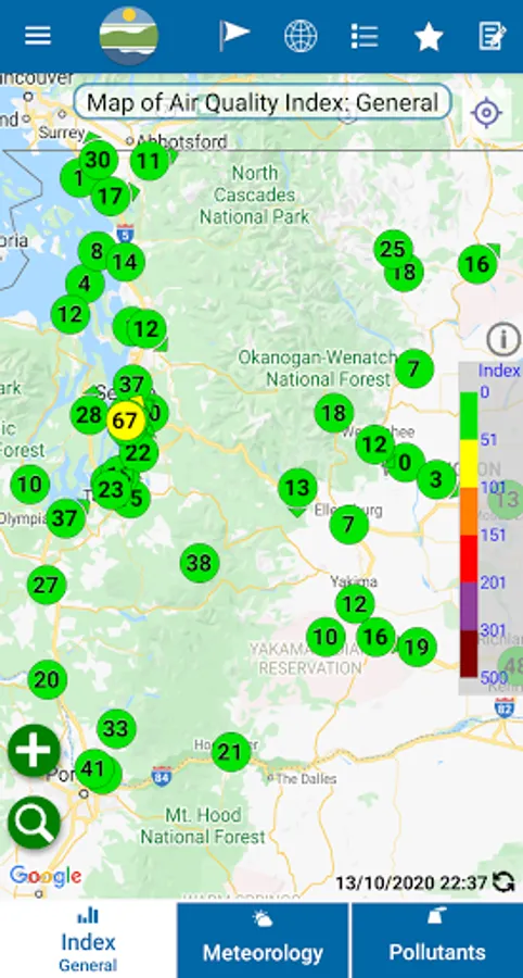 Washington State Department of Ecology’s Air Quality Program maintains an air-monitoring network to accurately measure air pollution and meteorology conditions around the state in partnership with EPA, tribes, and local clean air agencies. We use this smart phone app to inform the public about current air quality conditions and provide guidance that people can use to protect their health when air quality is not good. Most recently collected data have yet to be thoroughly reviewed for validity and should be considered preliminary. Visit the full website for more information: https://enviwa.ecology.wa.gov/home/map