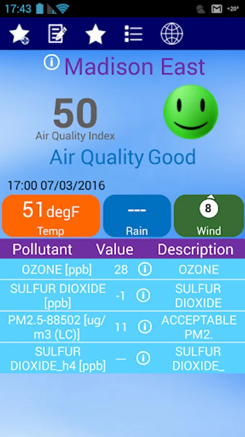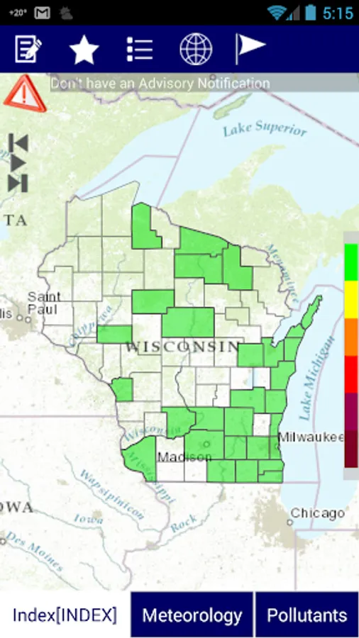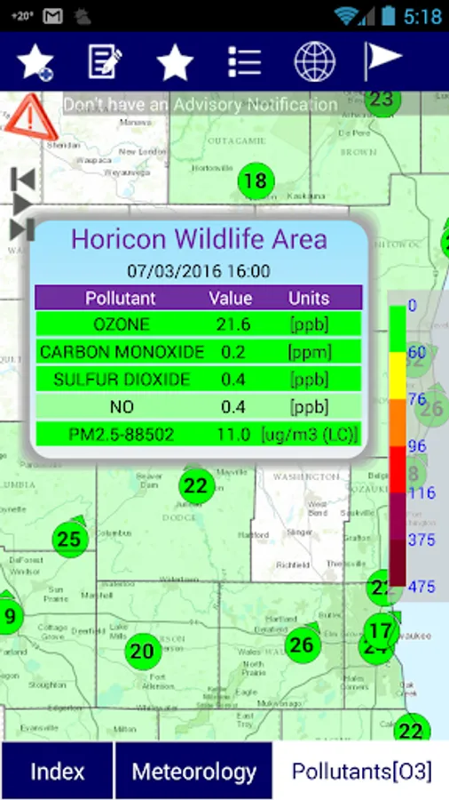 The data displayed in this application is acquitted from air quality monitoring stations in Wisconsin.