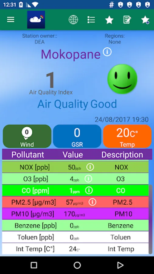 The data displayed in this application was acquired from air quality monitoring stations in the South Africa.