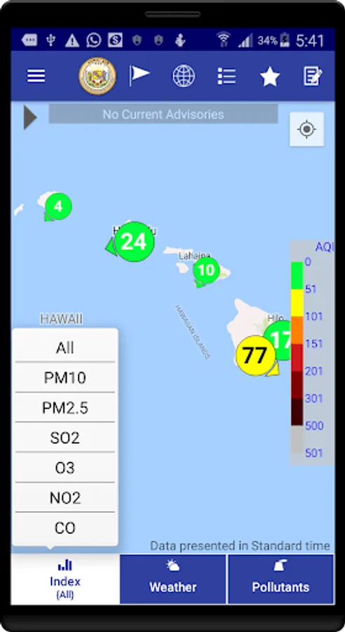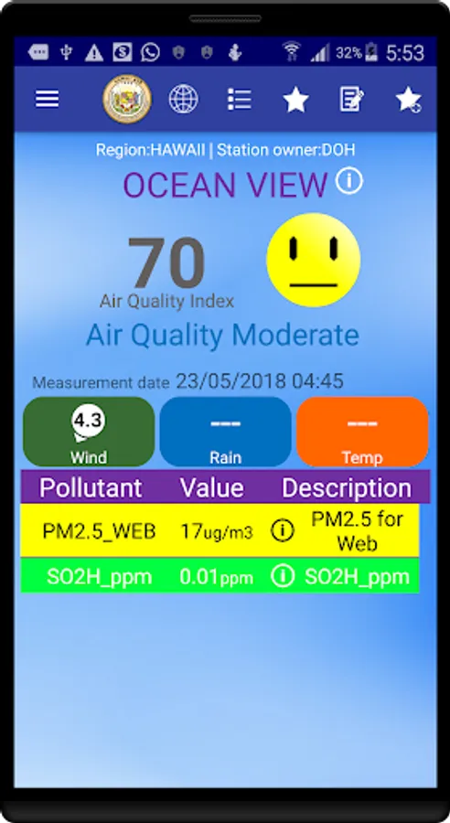 The data displayed in this application was acquired from air quality monitoring stations operated by Hawaii Department of Health.