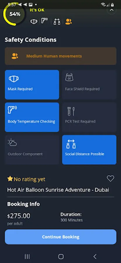 A risk score is auto-generated based on each activity or venue's enforcement of safety and health precautions, allowing you to explore Dubai safely—and with peace of mind.