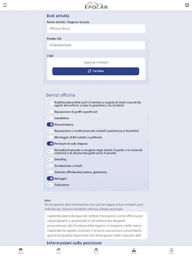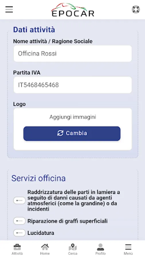 For this sector it will be decidedly incredible their investigation and being sought after, here they will be able to identify competent personnel, suppliers, services of all kinds for companies (spare parts dealers ...) having a better perspective both in terms of personnel and to search for better products suitable for own works. We also consider a very important factor, CUSTOMERS, the latter will enter for free, seeing in real time the companies affiliated with EPOCAR, being able to contact them directly from the application, thus informing themselves about the jobs and making an appointment (a significant advantage).