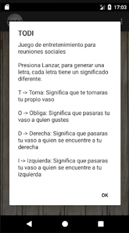 The TODI application generates four random letters, "T", "O", "D", "I". Each letter has a meaning and is generated randomly