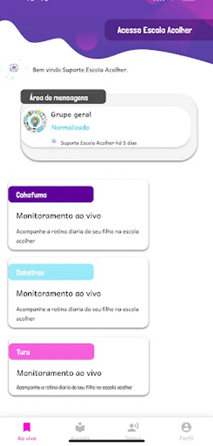 With the acolher app, you will now be able to follow your child's routine in real time, access the schedule routine, chat, and information about events in a single application.