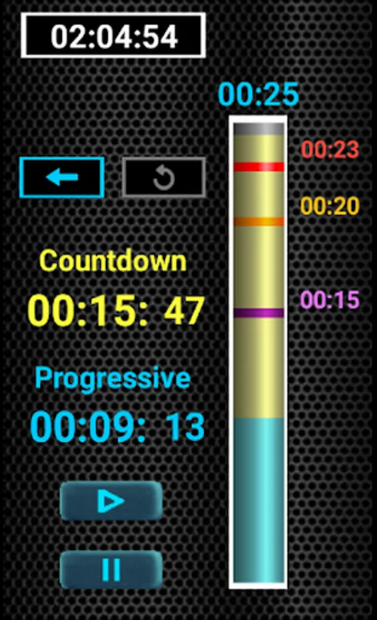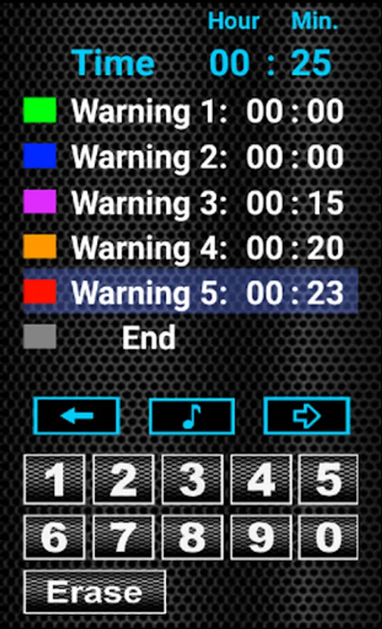 App to time a certain time interval, allowing the inclusion of audible and visual warnings, or just visual ones, at specific moments of the interval, in order to alert to the time already elapsed and to the time remaining.
