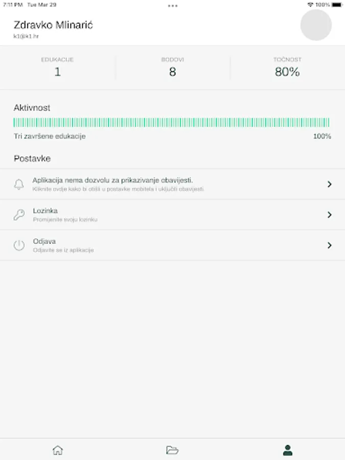 - Education: educational content in the form of images, videos or text. Inform the organization about news or changes, and then test your knowledge with a set of questions. You determine the number of correct answers as desired.