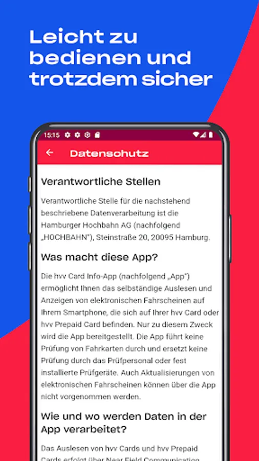 Note: The hvv Card Info app is only used to display purchased tickets. It is not possible to check their validity at your current location or on your current journey.
