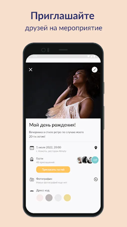 This application is for creating absolutely any event. From cozy family to large-scale grandiose.
