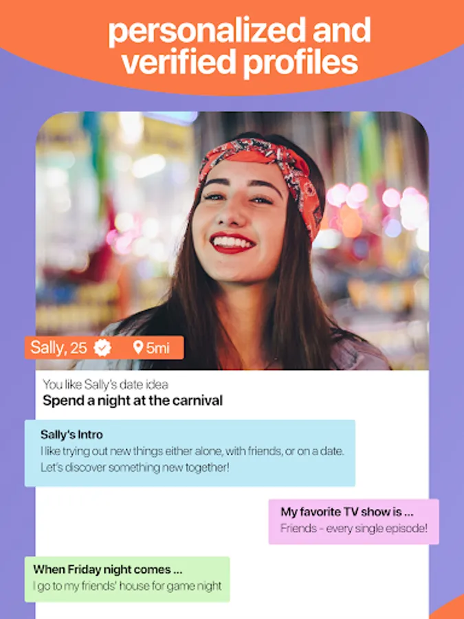 We believe in showcasing your unique personality and interests. Your profile is your opportunity to make a memorable first impression and attract potential partners who resonate with you. Take advantage of the photo album, bio, and intro features, along with our engaging question prompts, to create a profile that sets the stage for meaningful connections.