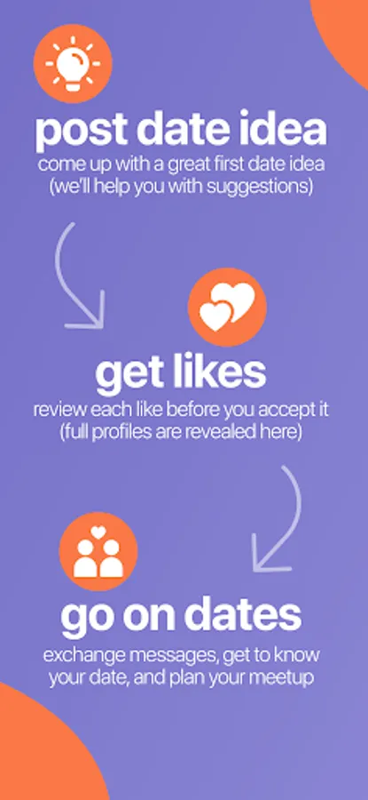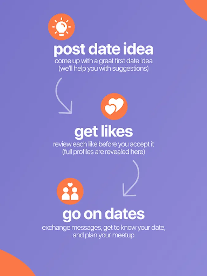 Everydate reinvents the dating experience by allowing singles to post their creative date ideas for others to like. Unleash your creativity and come up with unique date ideas that will yield more likes. When inspiration is needed, Everydate provides personalized suggestions for first date ideas so you can stand out and build a better profile. Our intuitive interface presents all the first date ideas in one screen, giving you a quick and convenient way to browse and find the perfect match. No more endless swiping! Tap the heart icon to show your interest and let the adventure begin!