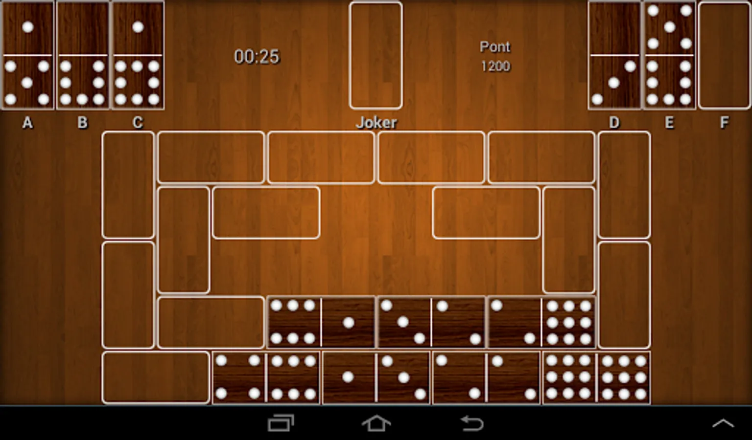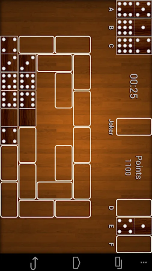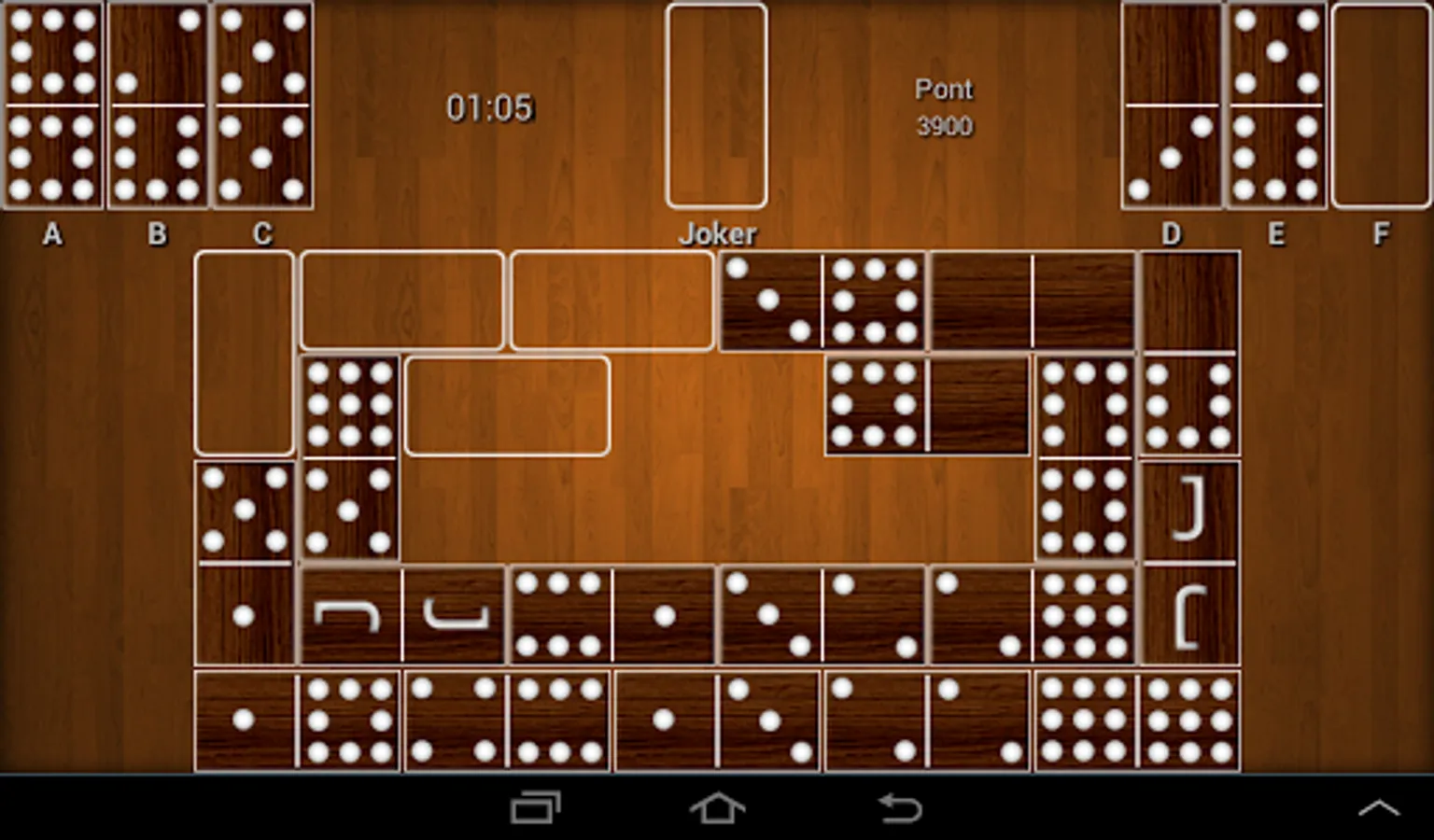 Fill the board with dominoes and collect as much point as you can. The A,B,C fields givve you points, the joker and the others are cost you points. Hurry the time is not unlimited! (Detailed rules are in the app)