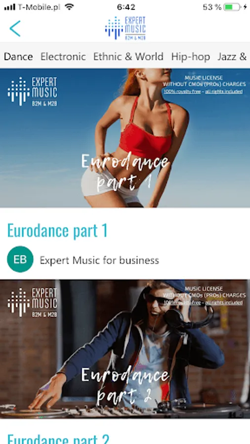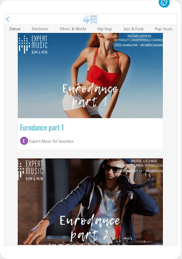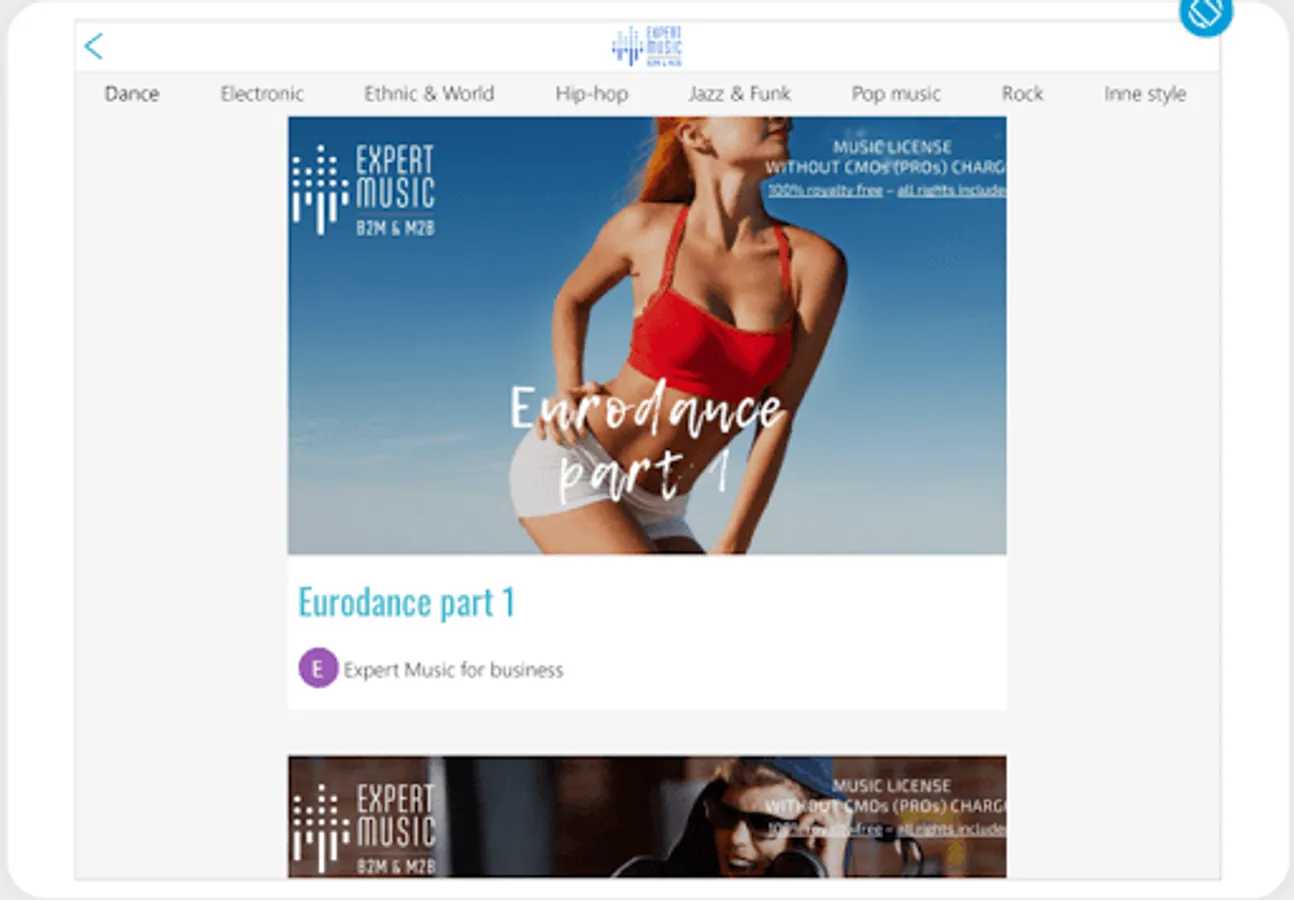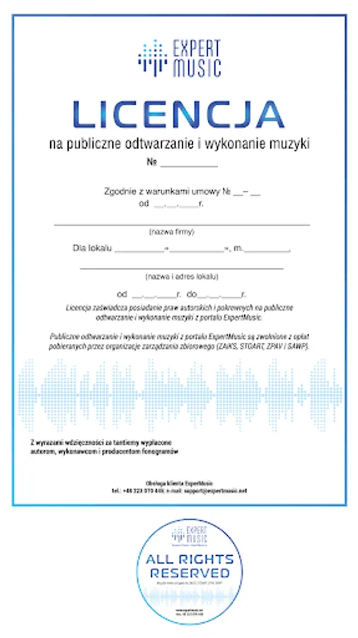 - Order licenses (ExpertMusic price offer: license for legal public playback of music in the premises and the ability to place an order)
