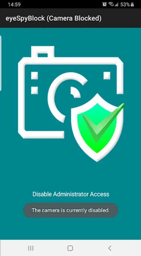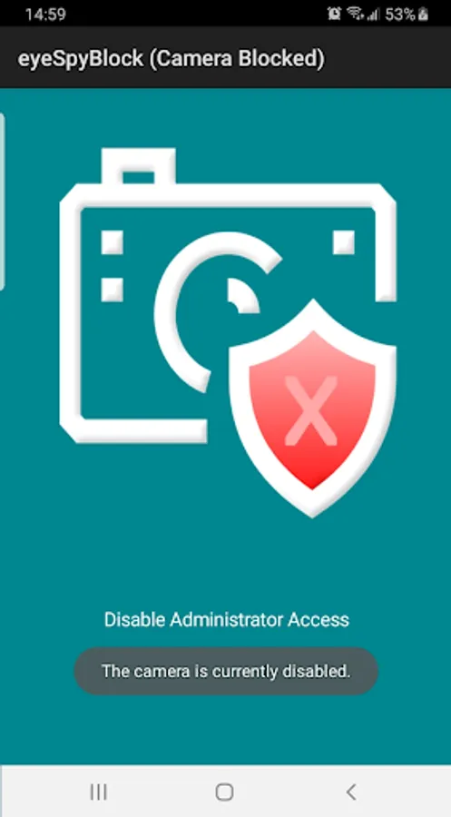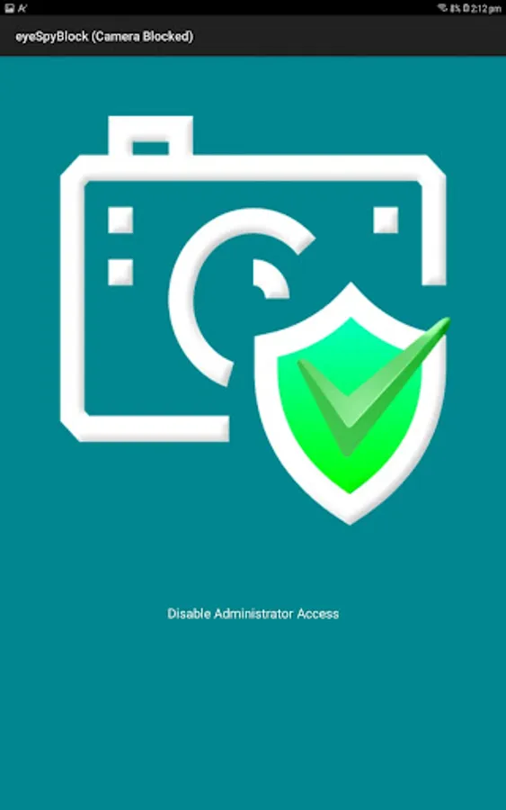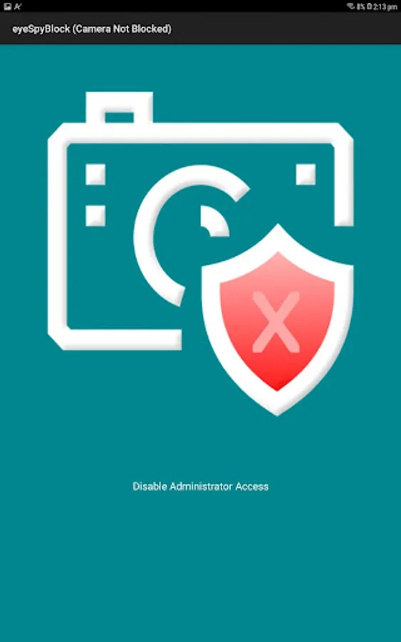 eyeSpyBlock Camera is a simple functional device camera kill switch. It has been designed to give control back to the user of a device, and reassure them that no software can use the device camera. It uses the Administrator authorization permission to disable the camera from prying eyes. When you wish to use the camera, you simply return to the application and toggle the protection status.