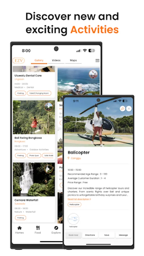 Activities/Services: Looking for exciting activities and convenient services? EZV has you covered. From thrilling adventure sports to relaxing spa treatments, our platform connects you with a wide array of experiences tailored to your preferences. Find and book activities hassle-free, ensuring you make the most of your time, wherever you are.