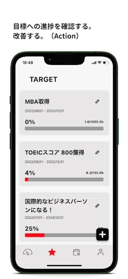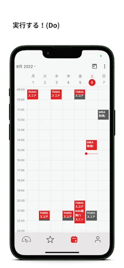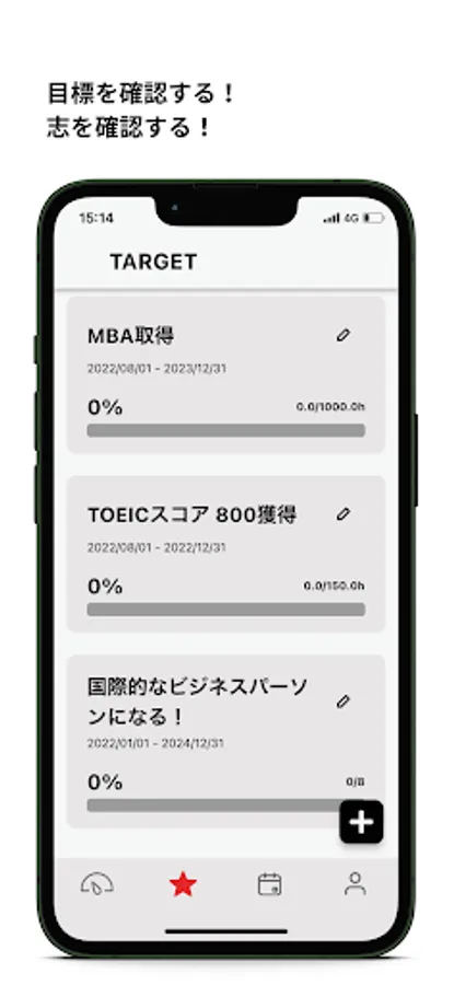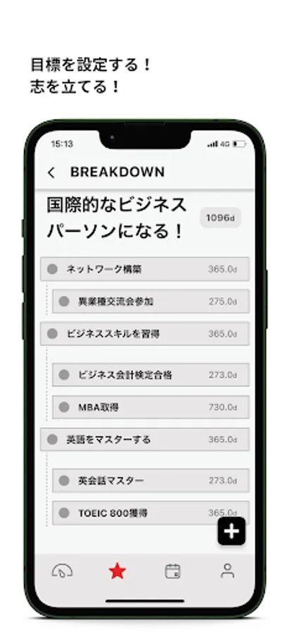 To become an international business person, use the goal breakdown function to specify goals and develop an action plan. ((Example: Acquisition of TOEIC score of 800, acquisition of MBA)