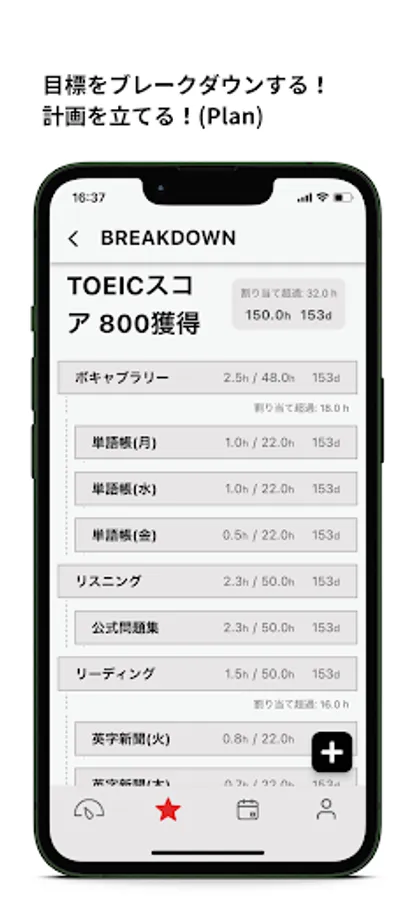 Use the goal breakdown function to determine which subjects to study and how many hours / combination of reference books