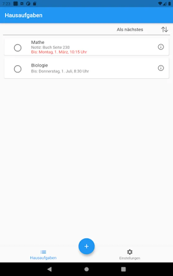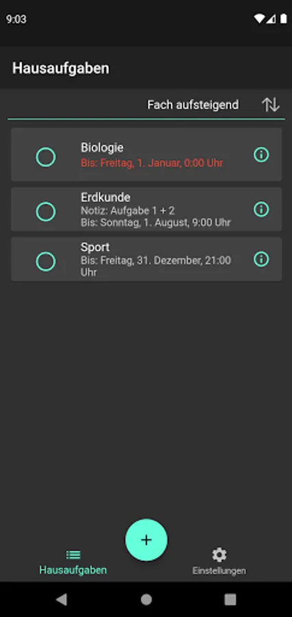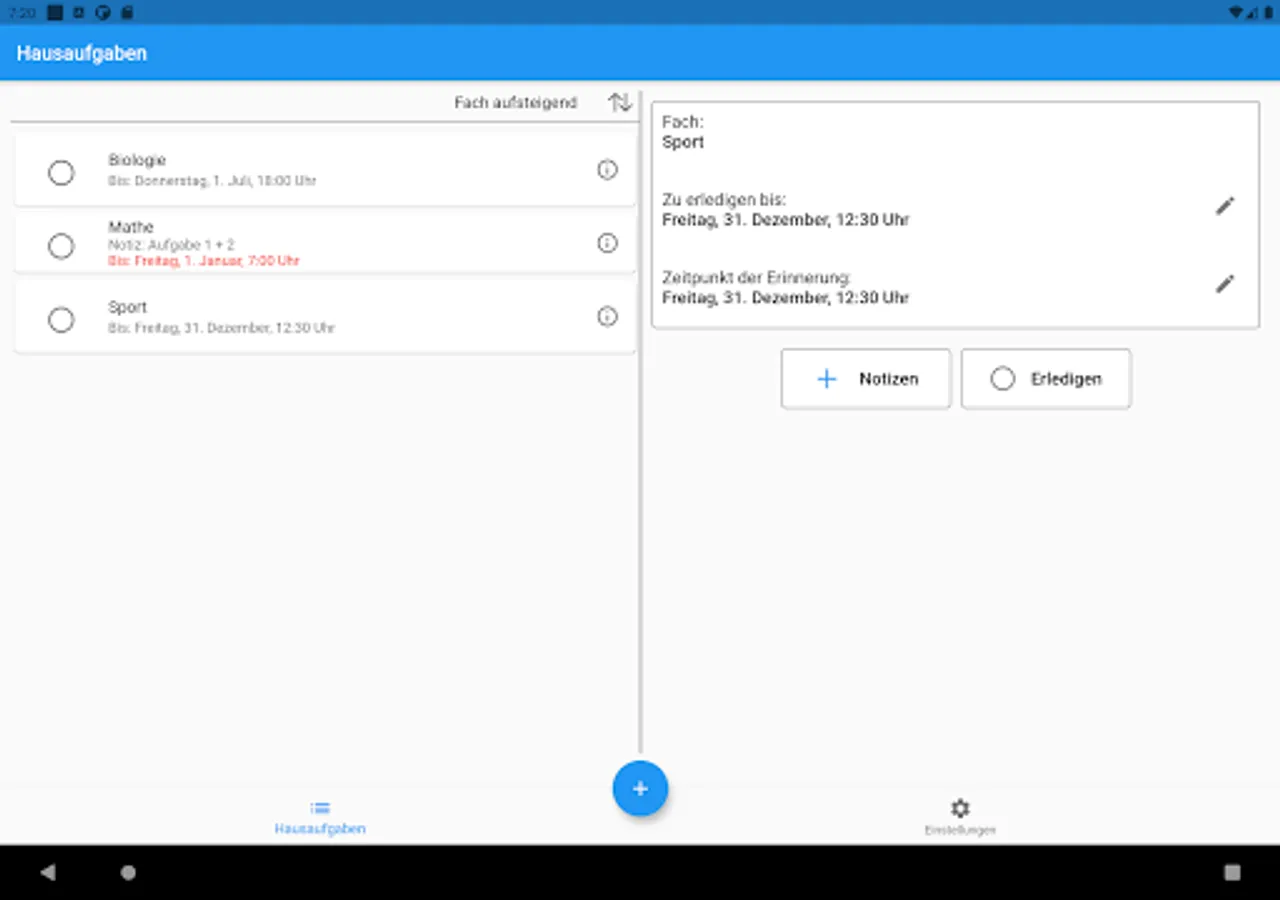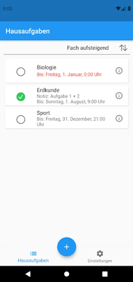 - Adapted sorting of the individual tasks (e.g. by subject or date)