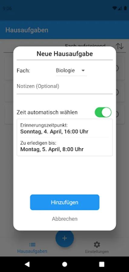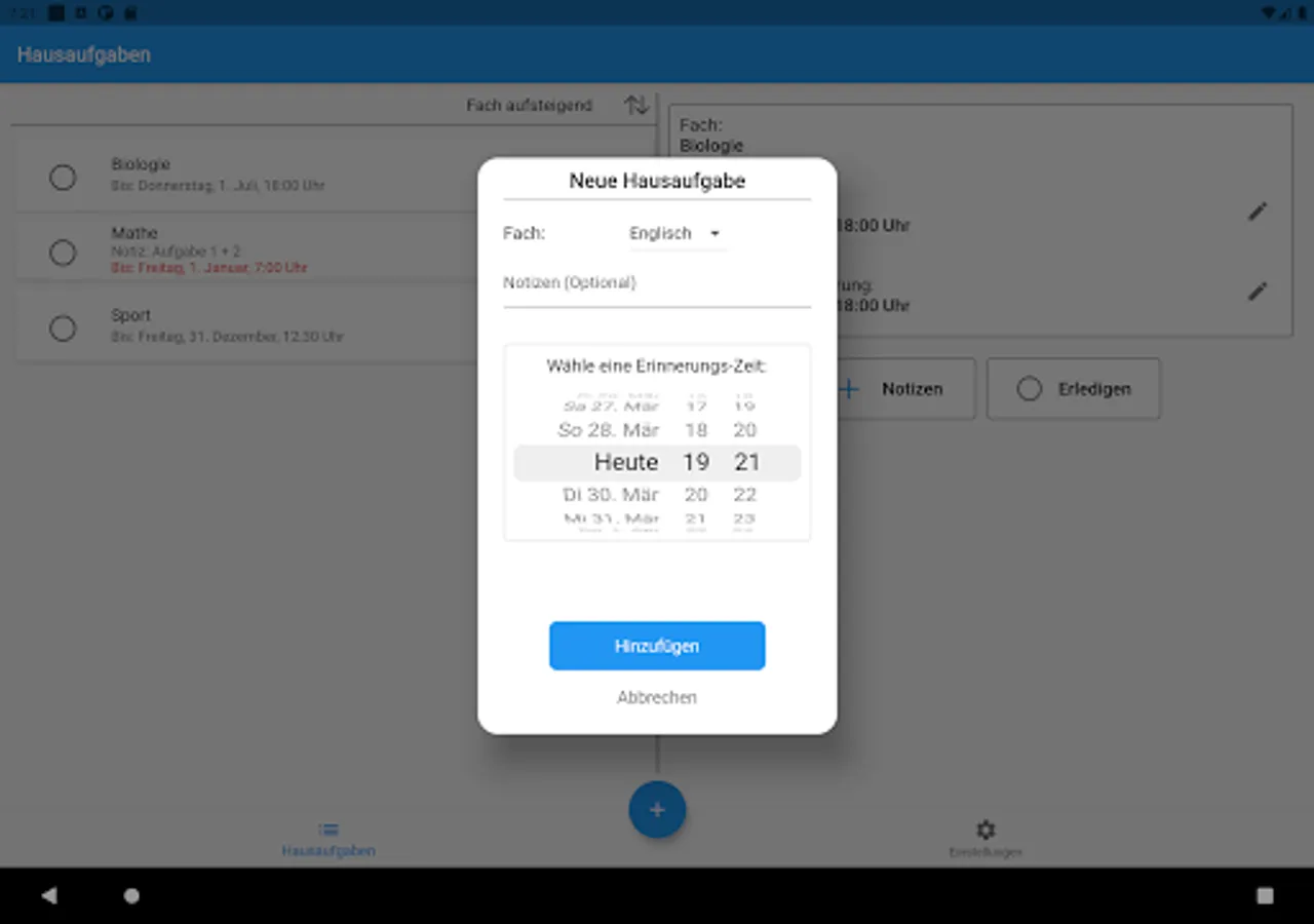 This saves you the hassle of writing entries in your homework notebook and the hassle of searching for deadlines at school.