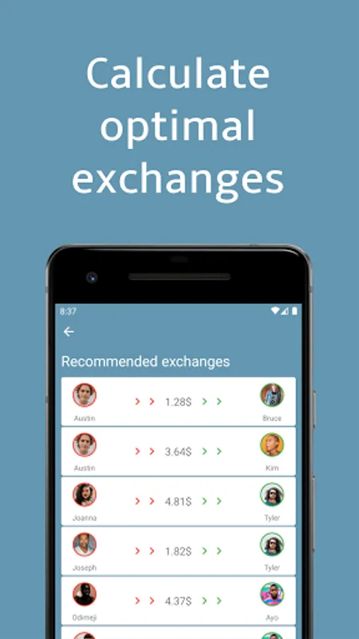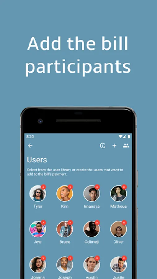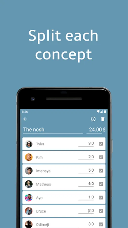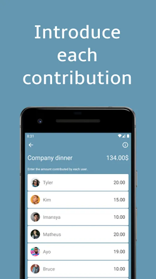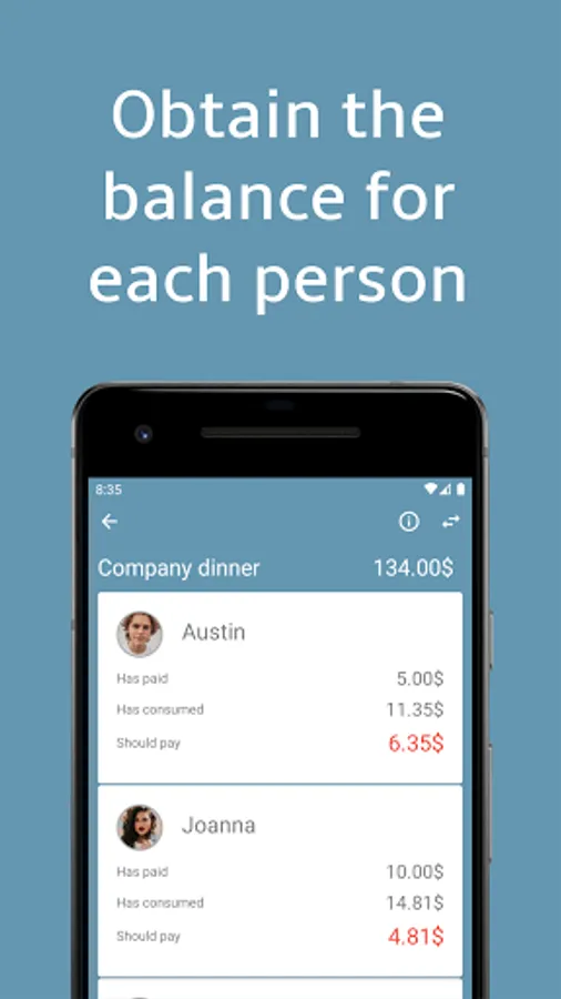 - Indicates how much money each participant has paid and calculates the financial balance.