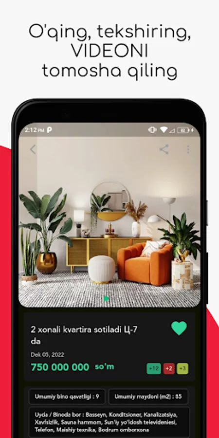 Viloyat, shahar, narx va boshqa ko'plab parametrlar bo'yicha tezkor filtrlash imkoniyati.