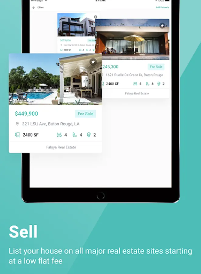🏠 SELL A HOME - When you download the Falaya app are able to list a property, right from your device, in less than 10 minutes. With a variety of pricing options, starting as low as a $399 flat fee, you get to pick a plan and add on-demand services that work best for your unique situation. You are in control from day one!
