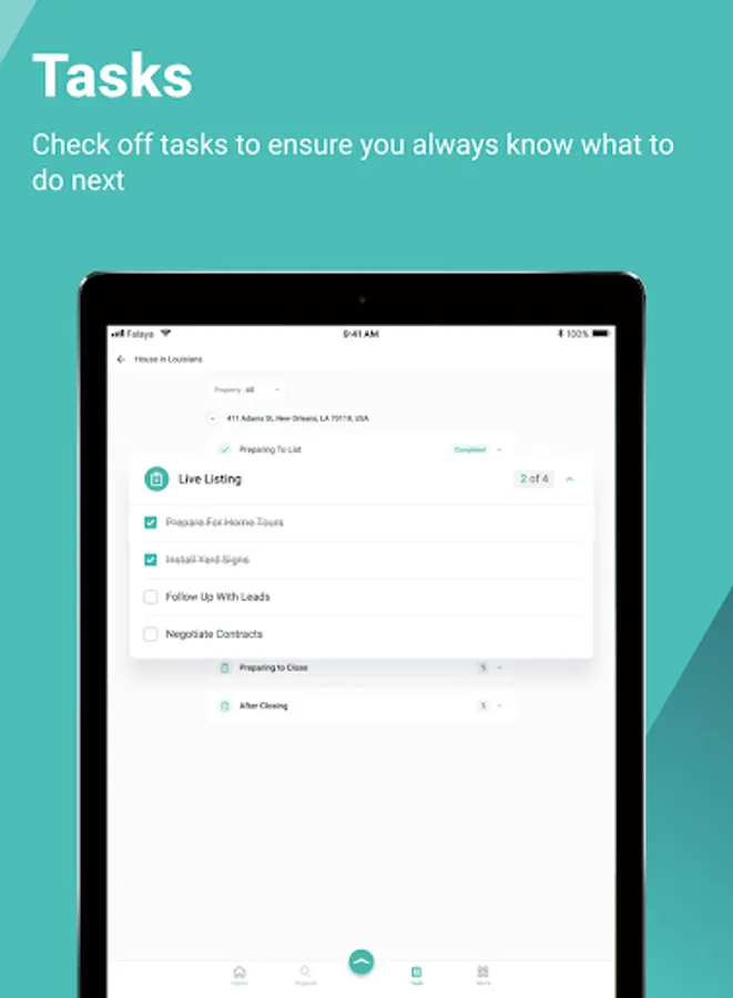 Welcome to the all new Falaya app. In this version we bring you an entirely new look and feel. The app is now packed with all of the same tools that are available on our website to make selling a home easier than ever no matter where you are. We are always looking to improve so please send any feedback to contact@falaya.com. Thanks!