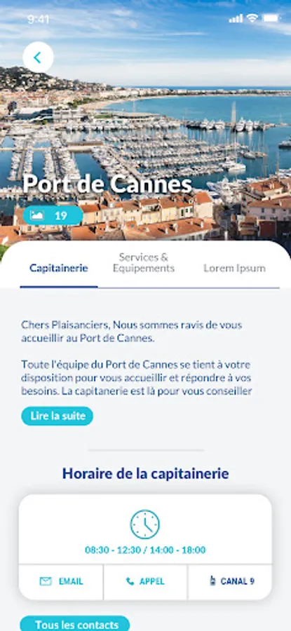 The Port de Cannes application gives you access to Port information and services.