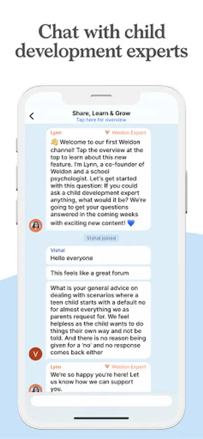 "The Weldon App offers a variety of perspectives on parenting topics and the ability for parents to ask personal questions or connect to a coach in a non-judgmental community" - Beth Greenawalt, PCI Certified Parent Coach®
