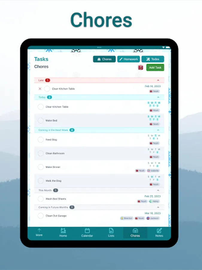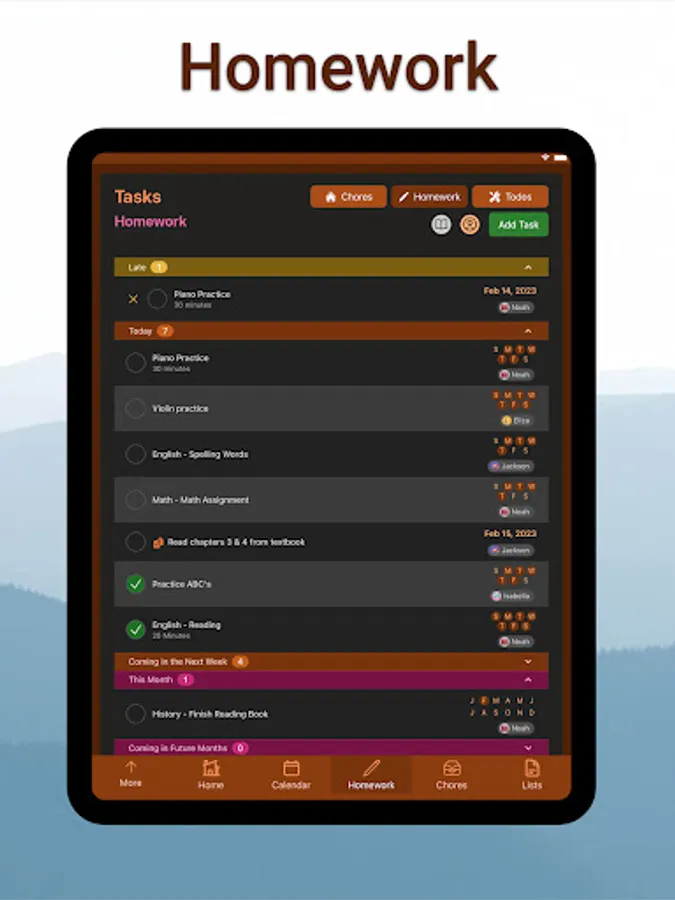 - Create and organize chores, homework, todo’s