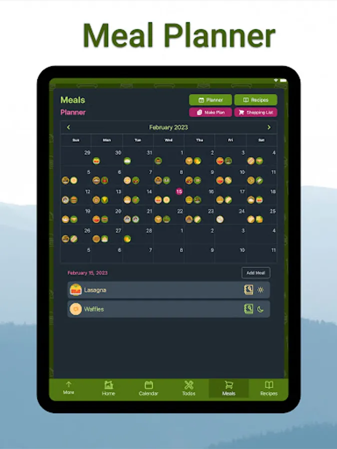 - Quickly generate a meal calendar for the family