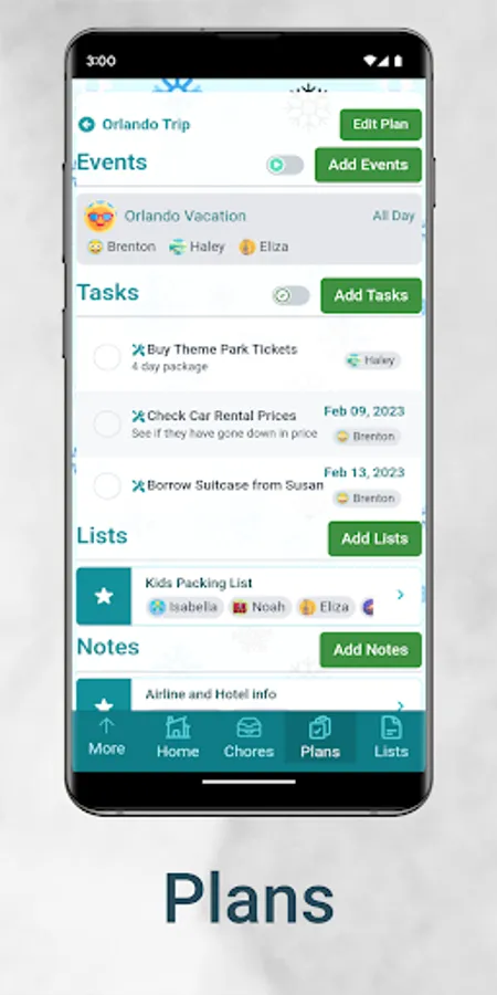 - Organize and assign tasks, events, and lists to one person, multiple people, or everyone